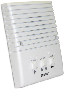 TekTone offers a very basic intercom system consisting of an entrance panel that is wired to individual in-unit apartment stations or to an apartment handset. Entrance panels can either display names via an alphabetical directory panel or display individual names beside each button. The corresponding in-unit stations are equipped with three buttons for separate talk, listen and door opening functions.